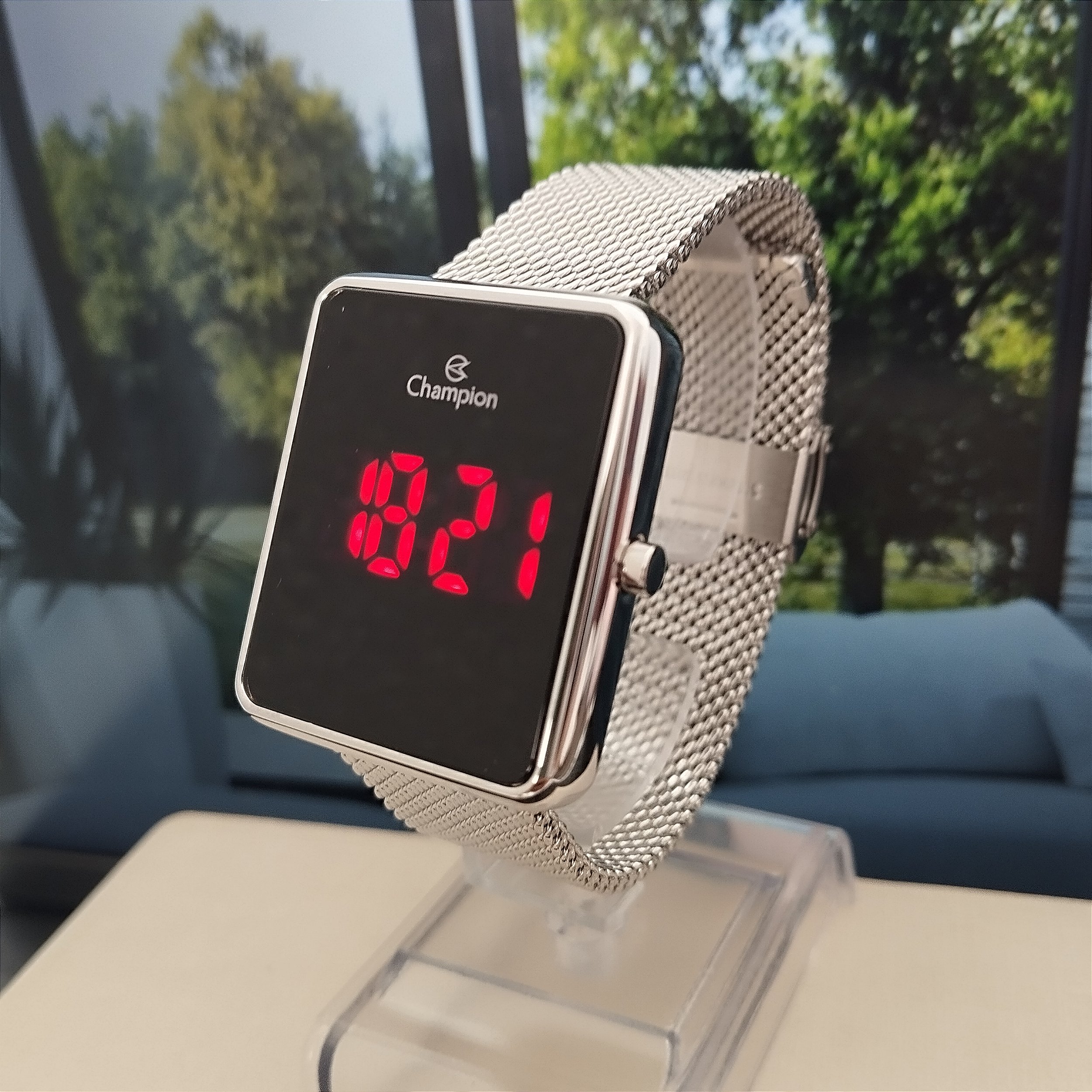 Mini Relógio Champion Digital Quadrado Feminino Prata - CH48180T