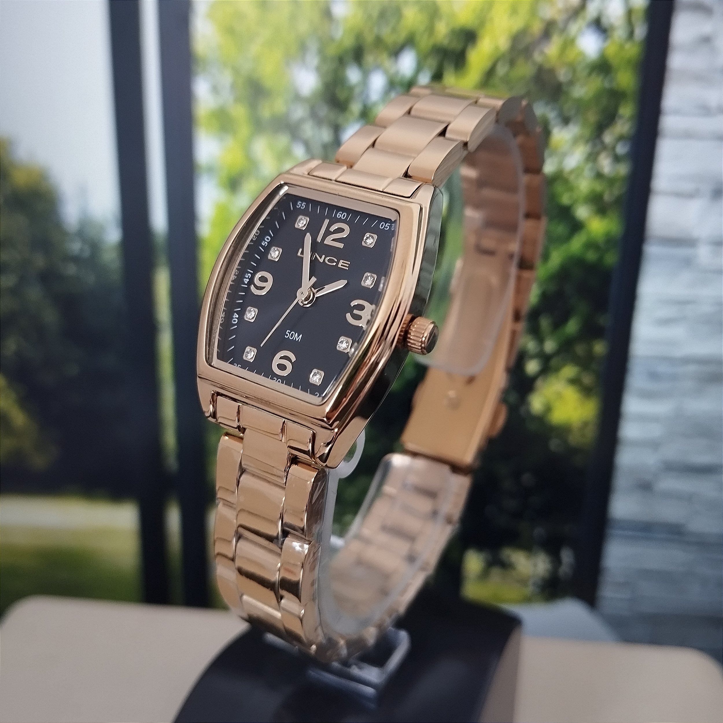 Relógio Lince Dourado Feminio Fundo Preto LQGH265L22 P2KX